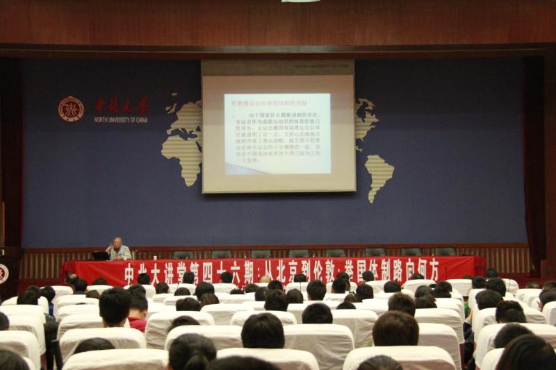 2013年4月25日上午10:00在图书馆五层学术报告厅,体育界泰斗卢元镇教授应邀做客中北大讲堂,开展主题为“从北京到伦敦,举国体制路在何方”的讲座。报告会由体育与艺术学院院长刘定一教授主持。卢元镇教授是我国体育界著名人物,现任华南师范大学体育科学学院教授,博士生导师。1984年被评为北京市教育系统先进工作者;1993年获得北京体育大学“科技十佳”的表彰;1996被评为北京体育大学优秀教师。1999年被评为全国体育科技先进工作者,同年被国家科委、中宣部等单位评为全国科普先进工作者。此次beat365英国官方网站之行是卢元镇教授第三次莅临beat365讲学。