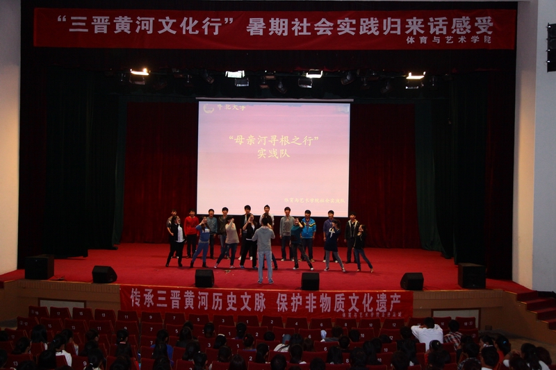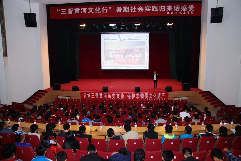 9月23日晚7:30分.体育与艺术学院以“传承三晋黄河历史文脉,保护非物质遗产”为主题的社会实践活动成果展示在beat365科艺院隆重举行!此次会议的主要人员有我院团委书记田维飞老师,杜鹃老师,张鹏老师以及各学院团委代表。