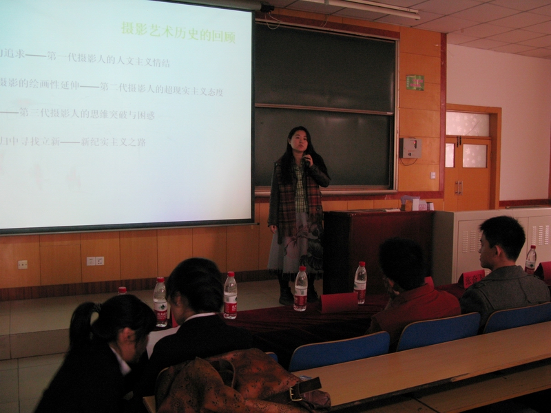 今年11月8日是我国第12个记者节,针对这一主题,座谈会特请到了旅法艺术硕士张奋飞老师。张老师是我院教授摄影的专业老师,她根据自己多年的拍摄经验并结合现代摄影的各流派,特准备了“无表情审美”的潮流摄影思想,以作品展示的方式向在场同学诠释了个中特点。毕浩然会长也为同学们准备了众多优秀摄影作品,从学生的角度出发,多方面多角度介绍了校园摄影的各种技巧。