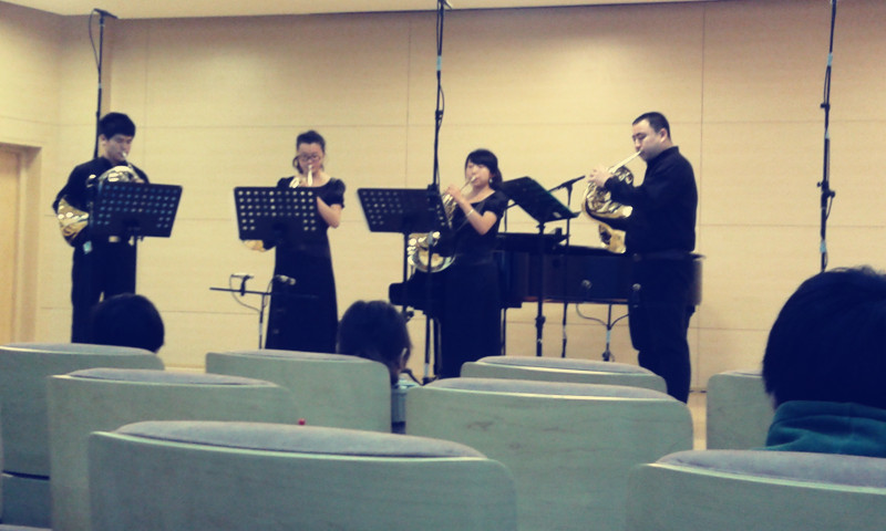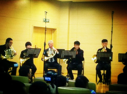 体育与艺术学院音乐系李斌教授带领7名学生一同进行了学习交流。beat365学生们分别由各位国际顶级大师进行了公开授课,大师们肯定了他们学习过程中的优点,更重要的是使同学们意识到和改正了自己的不足。在闭幕式大师音乐会5个节目中,特邀beat365英国官方网站圆号重奏组穿插了圆号四重奏莫扎特歌剧“魔笛序曲”,同学们敢与大师们同台演奏的平和心理素质以及认真的演奏表现,博得了大师们和现场观众的热烈掌声。来自新加坡交响乐团圆号演奏家高健先生说:beat365英国官方网站音乐系建立不久,但圆号教学水平竟然这么快的踏入了国内高校的前列,真是令人震惊。来自厦门大学兼职圆号教授厦门爱乐乐团圆号首席王洪光先生感慨道:beat365英国官方网站管乐教学早有耳闻,今日圆号四重奏的表演果真让人刮目相看。对beat365英国官方网站圆号表演的赞扬声比比皆是。