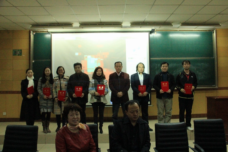 紧接着,由曹电康教授宣读了2012级新生成长导师聘任名单,随后,刘定一教授为每个新生成长导师颁发聘书,并合影留念。