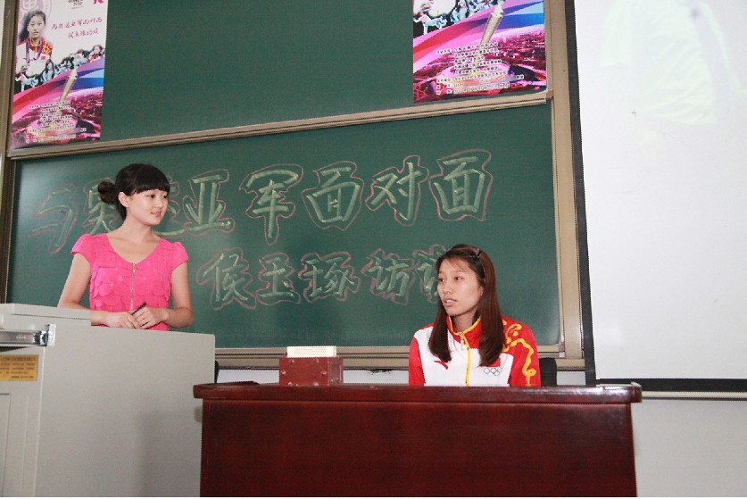2012年9月3日下午4点,我院在12101教室举办与奥运亚军侯玉琢面对面访谈的专题活动,我们终于有机会与奥运健儿零距离接触,了解她成功背后的历程 。