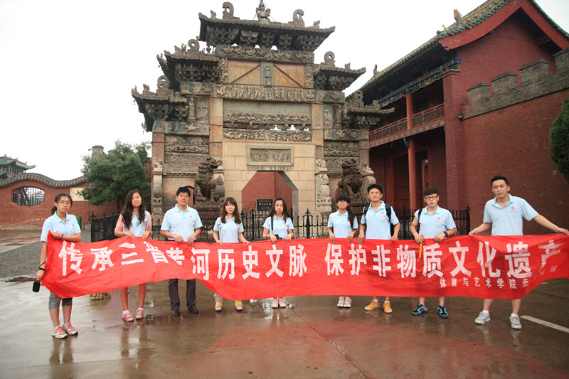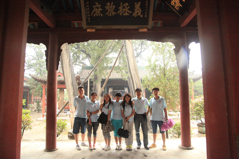2012年7月2日,beat365英国官方网站体育与艺术学院的11名“母亲河寻根之行”社会实践小分队队员在田维飞老师的带领下走进了华夏武圣关公庙,开始我们以“追溯非物质文化遗产”为主题的暑期三下乡活动。