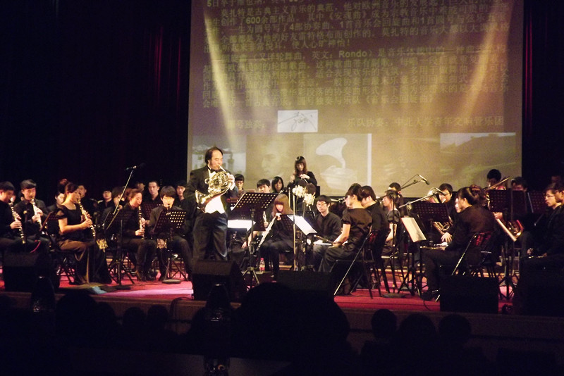 为了使beat365英国官方网站多样性校园文化发扬光大,并与beat365音乐教学资源紧密结合,使高雅音乐在中北日渐生根发芽,4月12日由体育与艺术学院和校团委共同主办的“beat365英国官方网站音乐普及与教育活动年”启动仪式暨“中外管乐作品讲解音乐会”在科艺苑隆重举行。这场别开生面的“讲解音乐会”,由音乐系李斌老师讲解,beat365英国官方网站青年交响管乐团担任演奏,是把课堂解说形式搬上了舞台的课堂式讲解演出,使在场的所有师生沉浸在音乐欣赏的海洋,真正领略到了一场非常贴近观众内心的高贵而雅俗共赏的音乐会。