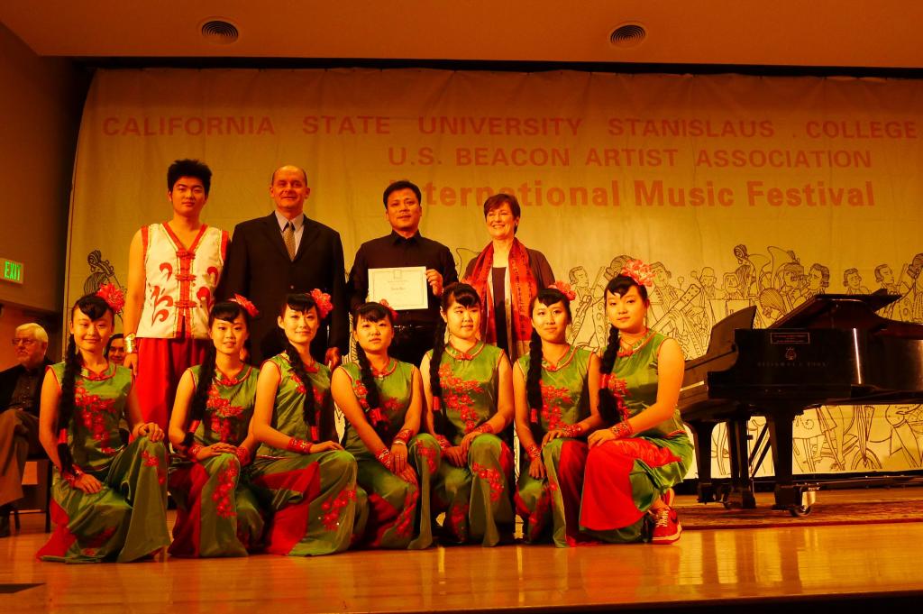 近日beat365英国官方网站合唱团一行19人于2012年2月7日赴美参加“2012美国迪贝艺术节”比赛的演出,载誉归来。