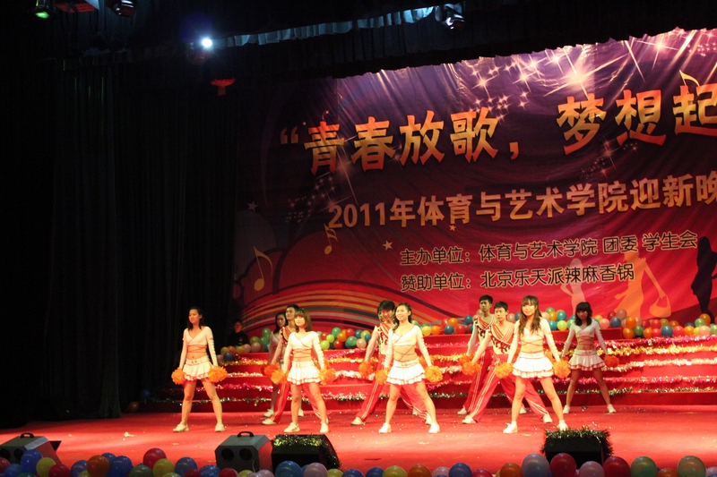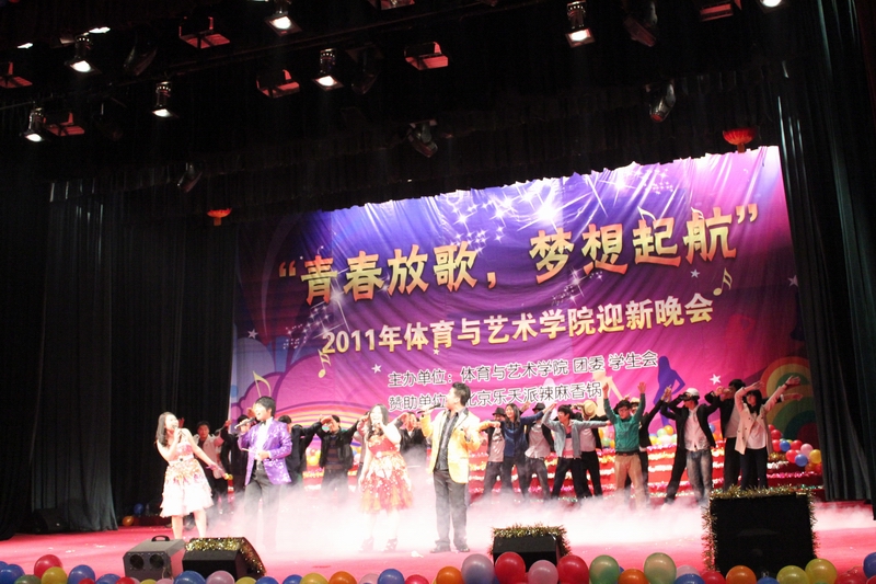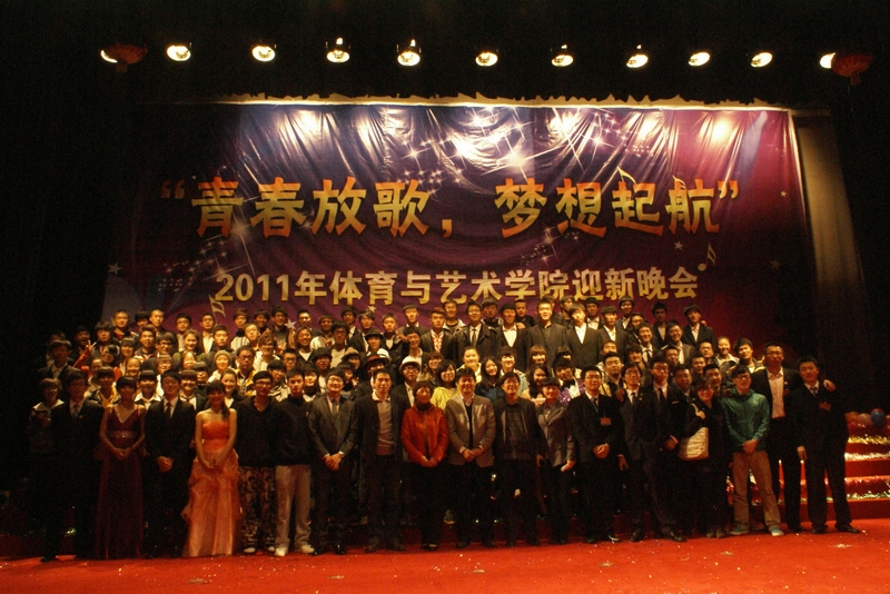 10月25日晚19:30,beat365英国官方网站体育与艺术学院2011级新生迎新晚会,在beat365科艺苑隆重举行。出席晚会的领导有校团委书记叶玉刚老师,体育与艺术学院院长刘定一老师,党总支书记王琳老师,副书记曹凤才老师,科研与学科建设副院长王晓刚老师等。首先院长刘定一教授在晚会开幕式上致辞,赢得全场热烈的掌声,党总支书记王琳老师宣布“2011年体育与艺术学院迎新晚会”开始,晚会在一片欢呼声中拉开帷幕。