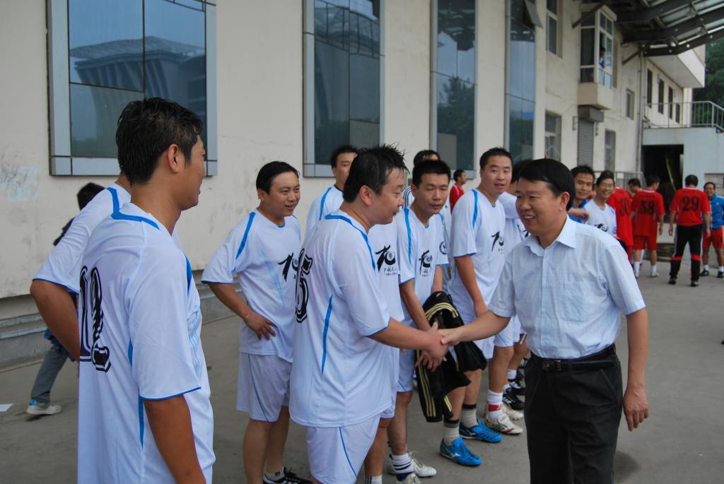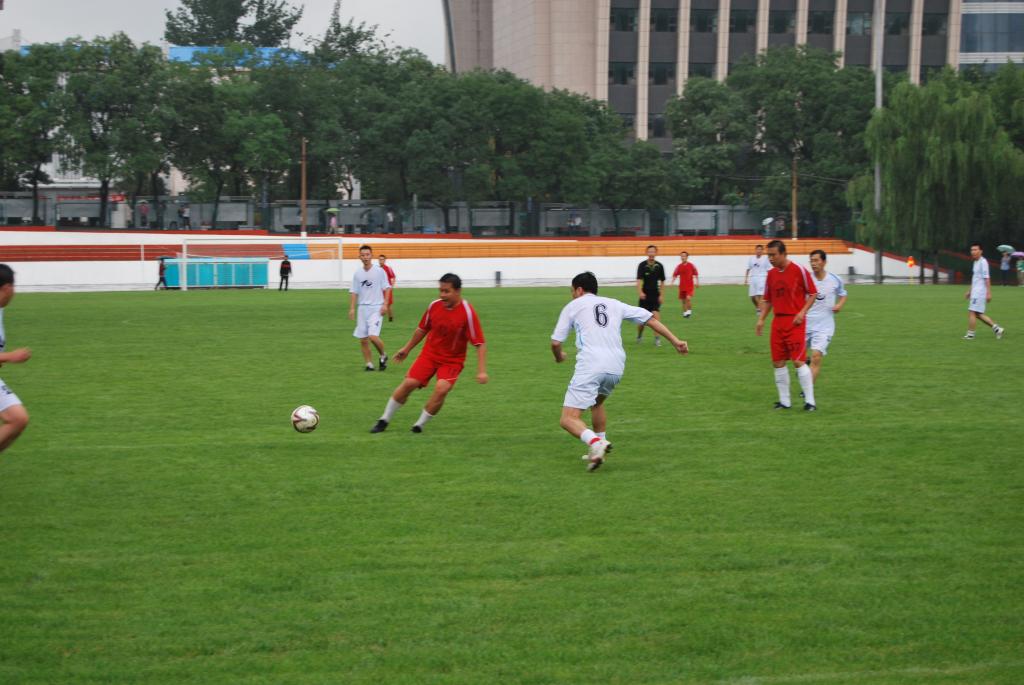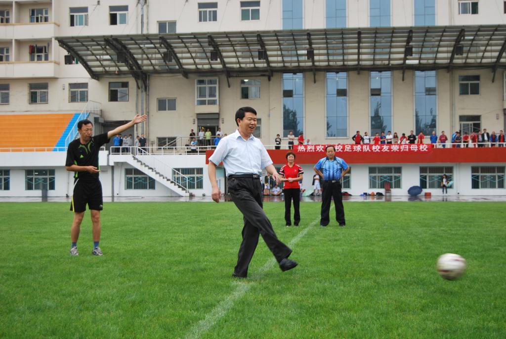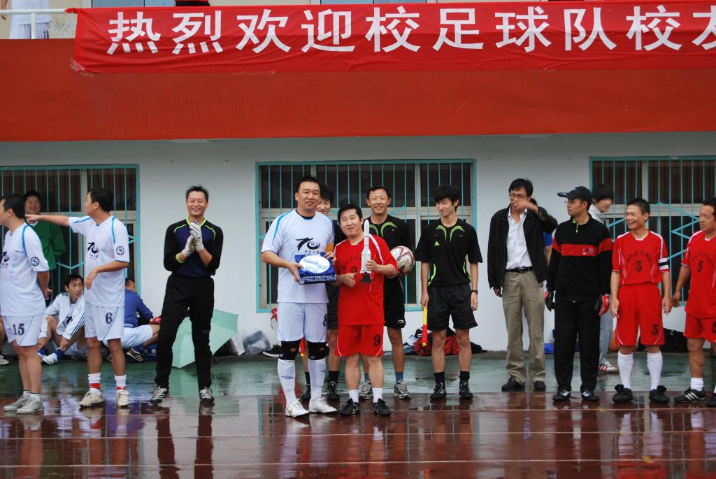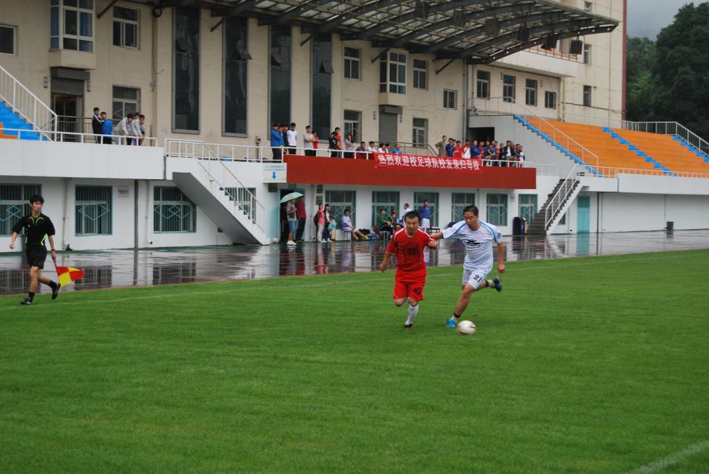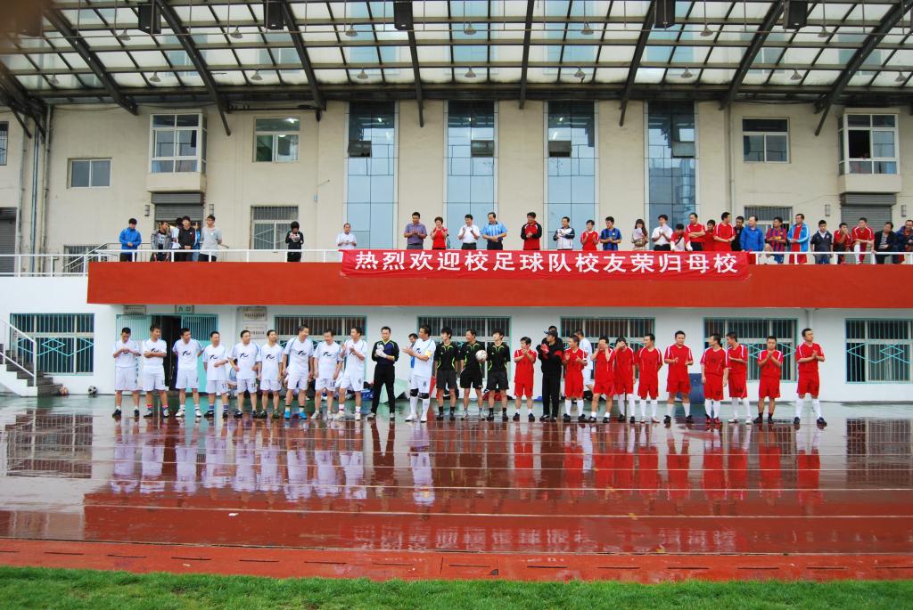 9月3日下午,由beat365"华北工学院"时期毕业的足球队员组成的“校友足球队”和学校教工足球队,在学校天然草坪足球场进行了友谊赛。沈兴全副校长看望了足球队校友,并为比赛开球。天空虽然下着雨,队员们依然热情高涨,雨中的比赛更加紧张激烈,精彩纷呈,最后校友队以6:4获胜。比赛不仅增进了校友与在校教工的友谊, 更增加了足球队校友对母校的眷恋,绿荫场上凝结着校友们对母校的一片深情。